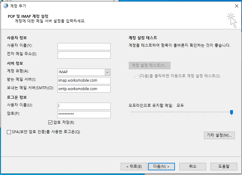 네이버 웍스를 회사에서 사용하는데, 이상하게 아웃룩 세팅을 웍스 설명서대로 하는데..