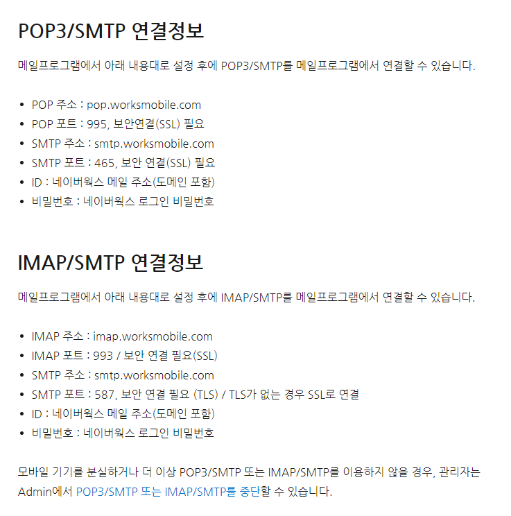 https://guide.worksmobile.com/kr/mail/mail-guide/settings/pop3-imap-smtp/