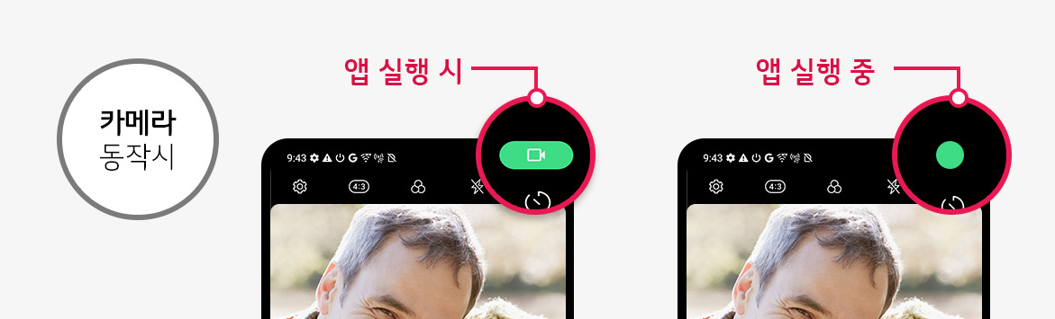 마이크 카메라 사용시 아이콘을 안보이게 하는거다.