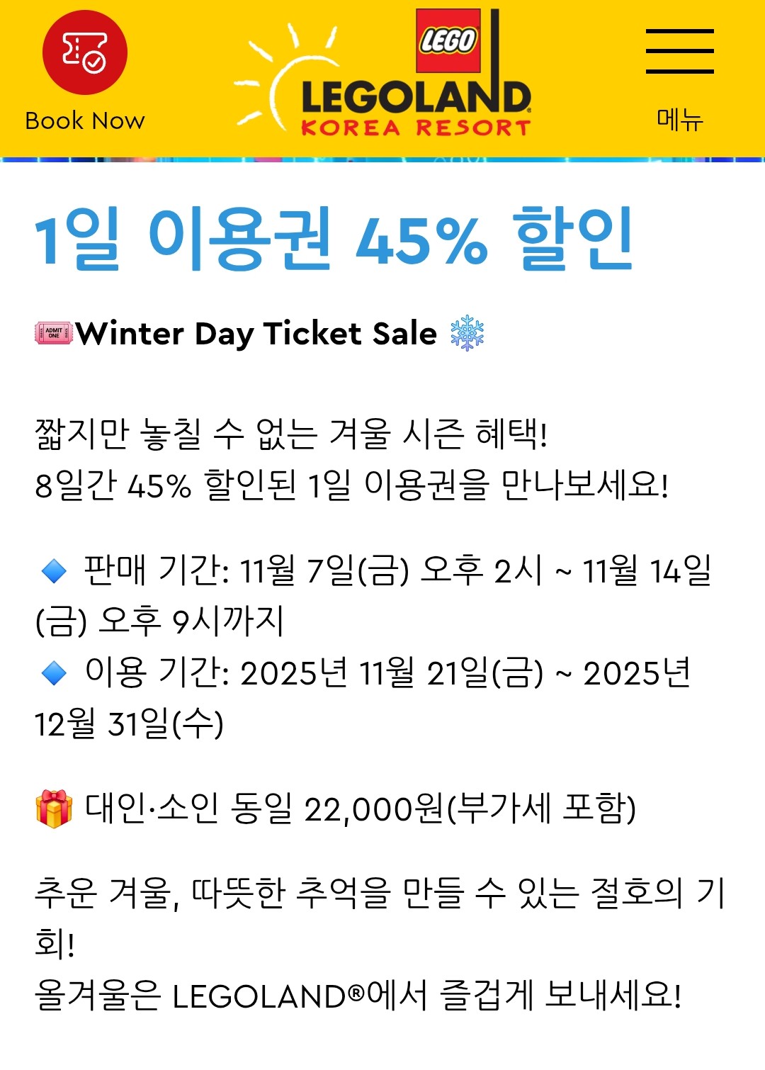레고랜드 저번주까지는 내년 연회원권 1년권 팔길래