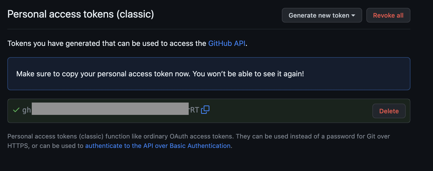 그러면 토큰 깃헙 토큰 설정이 완료되고,